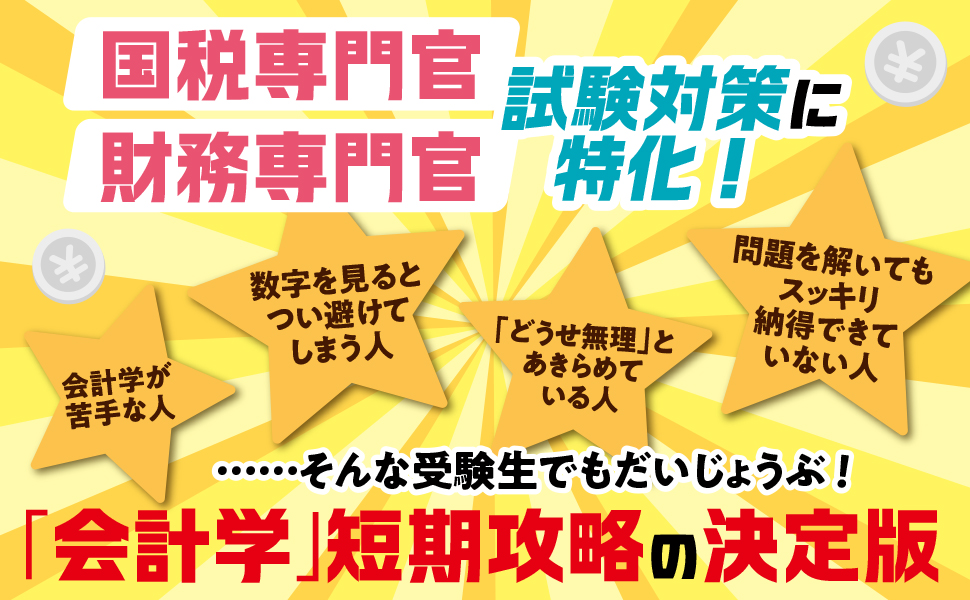 国税専門官試験の必須科目でありながら、多くの受験生が苦手とする会計学。その声に応えて作られたのが本書です。
