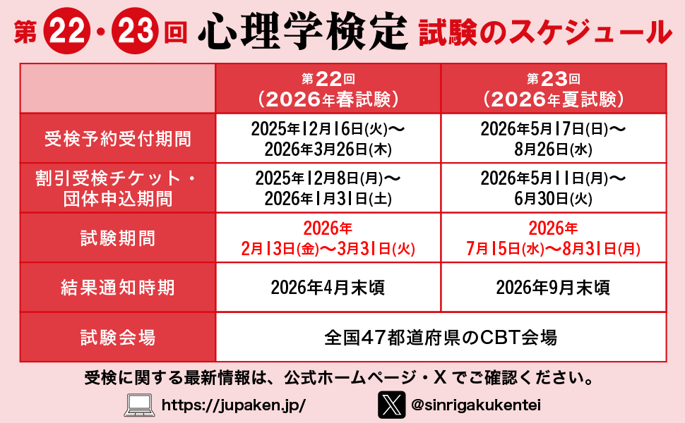 詳しくは、心理学検定公式ホームページをご覧ください。