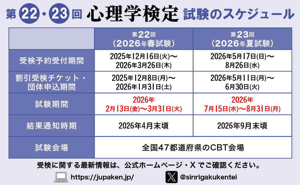 詳しくは、心理学検定公式ホームページをご覧ください。