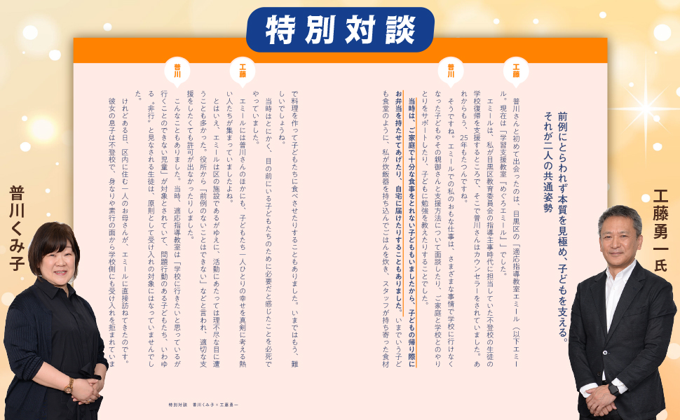 カウンセリング以外にも、親・教員・警察・医師・児童相談所等と連携した新しい生徒救済システム作りに携わるなど、いま学校教育界で最も注目されているSC。横浜創英のほか、岡田武史氏が学園長を務める愛媛・FC今治高等学校、教育界の風雲児・神野元基氏が校長を務める大分・東明館中高等学校のSCも務める。