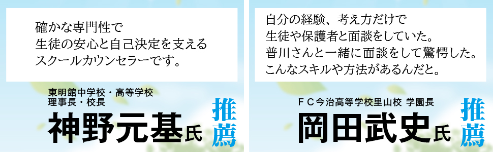 1994年の学校導入期から第一線に立ち続けるSC。30年間で、小中高のべ30校・3万人以上の生徒・保護者・家族と向き合い続けてきた。不登校から自殺未遂まで、ケースを問わず救うカウンセリング手法により、担当する不登校児童の復学率は8割を超える。20年来共に生徒支援をしてきた学校改革のカリスマ・工藤勇一氏から「日本一のスクールカウンセラー」と絶大な信頼を得ている。